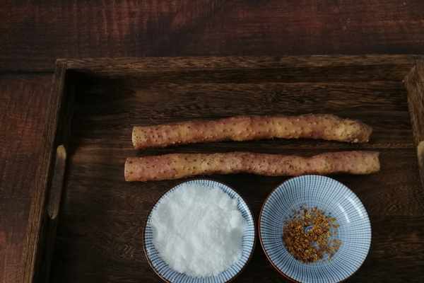 第一步:食材準備好,山藥、白糖、桂花。