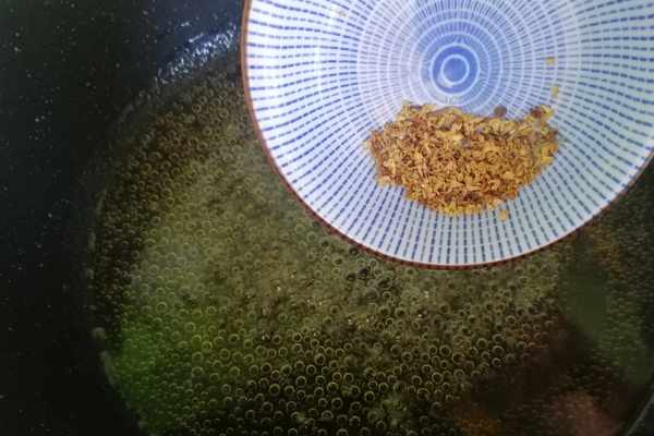 第七步:倒入幹的桂花,桂花的香味真的很好聞。