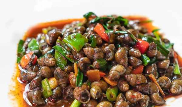 炒田螺在夏天的燒烤攤上,十分常見,是我們全傢都喜歡的美食之一,每次去吃燒烤,除瞭烤串、啤酒之外,必點的就是它瞭。