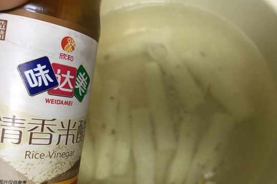 3.開水中倒入山藥、味達美清香米醋煮熟,加入米醋可以是山藥防止氧化,表面潔白