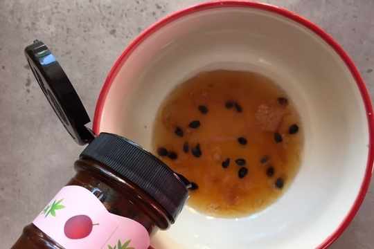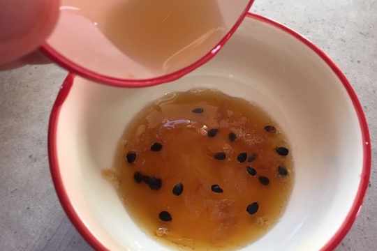 6.鍋內不加油倒入果醋汁、加糖和一小丟丟的鹽小火煮至微稠