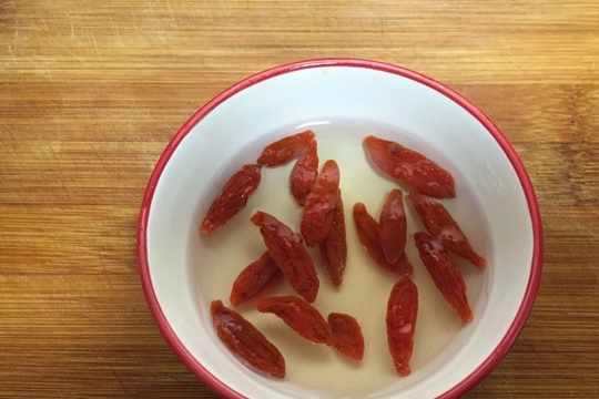 8.煮好的山藥擺盤,放上枸杞澆上蜜汁即可
