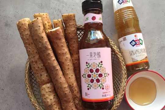 山藥350克、一泡果醋30克、蜂蜜20克、糖15克、味達美清香米醋5克