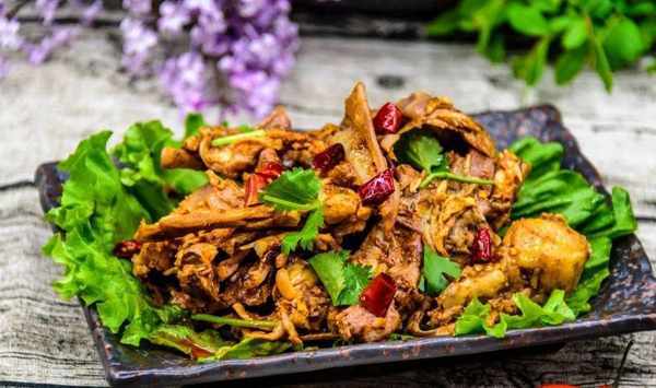 略帶湯汁的雞架,乖巧地躺在鐵盤裡,周身泛出極為誘人的光澤。雙手開動,將其撕成小塊,直接吮吸其原汁原味的鮮美,亦或者拌上些榨菜、香菜和辣椒,味道別提有多美妙。