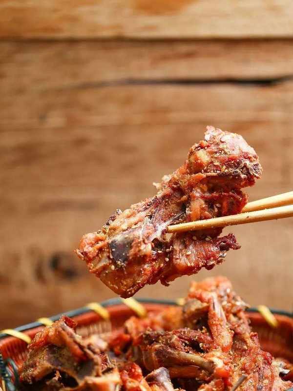 啃雞架的樂趣,自然還在於雞骨頭本身。烹飪後的雞骨,酥酥爛爛,被各種香料調教得有滋有味。嚼著骨頭、大口喝酒,別有一番暢快淋漓的江湖意氣。