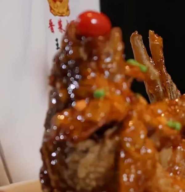 脆皮汁:白糖、冰糖、味啉、廣東米酒各100克,蘋果醋50克,鹽10克,蜂蜜25克,所有調料放入鍋內,小火熬3分鐘,並不斷攪拌,待白糖融化後即可。