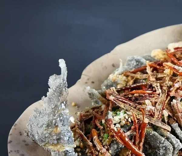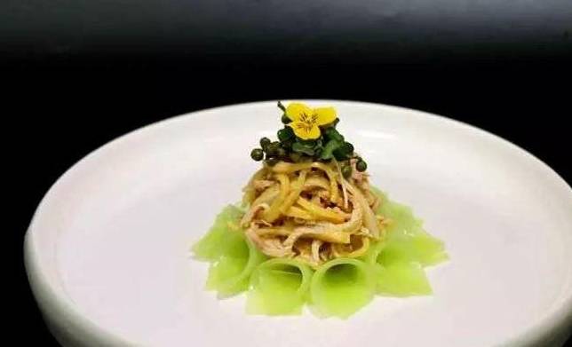 1.將草雞洗凈,放入蔥薑、料酒煮10分鐘,關火燜10分鐘,撈出放入冰水中冷卻,確保原料的口感,再取肉,手撕成雞絲,加入鹽焗雞粉、西湖味粉、濃縮雞汁、玫瑰露酒、藤椒油拌均待用。