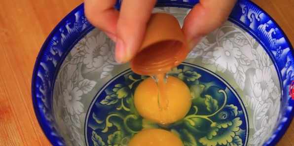 第四步,碗裏打入2個雞蛋,加入白醋去腥,然後充分將雞蛋攪拌均勻。