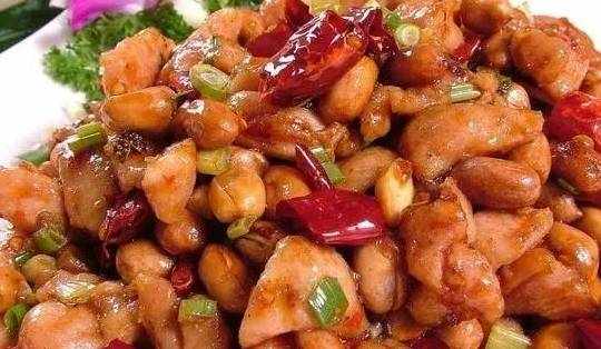 2、鍋裡熱油,加幹辣椒,薑片,蔥花熗鍋,加入肉丁轉小火翻炒至變色。