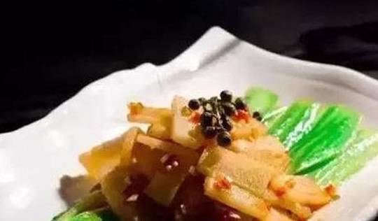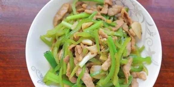 3.鍋內重新加入油,放入韭菜苔煸炒,調入鹽,加入冬筍和裡脊絲快速翻炒均勻,出鍋前加少許雞精即可;