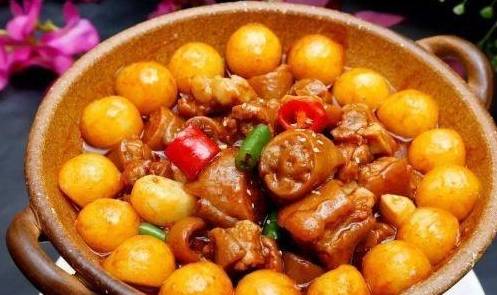 5.鍋裡留油,下蒜頭,下豬尾板栗,大火燒開,小火微。