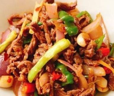 食材:牛肉;洋蔥;老薑;辣椒醬;老抽;料酒;芝麻油;淀粉(馬鈴薯);白糖