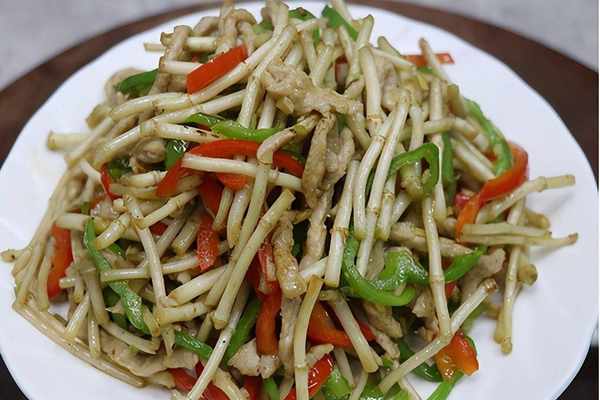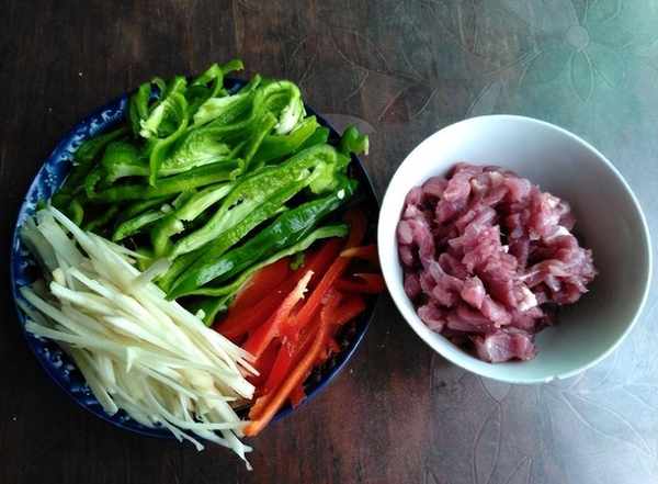將瘦肉切絲,用鹽、花椒粉、醬油、辣椒醃制10分鐘,蔥薑處理幹凈並切碎就可以開始炒制瞭。蔥薑炒出香味後迅速放入肉絲反復煸炒斷生,待肉絲變色盛出。