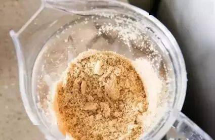 2、將冷卻後的芝麻倒入攪拌機進行攪打,期間需開蓋將附在攪拌機邊緣的粉末刮下。