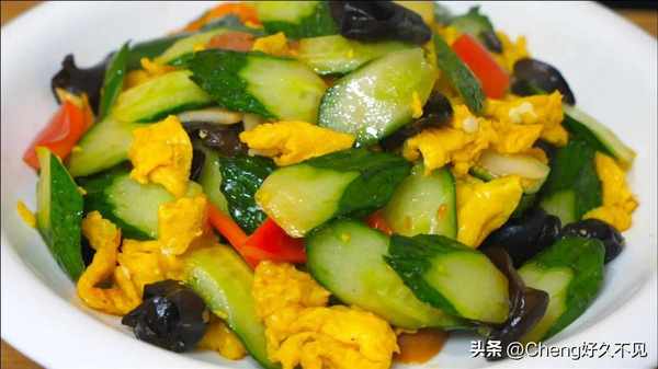 3.放入黃瓜片,煸炒幾分鐘,待黃瓜變軟;