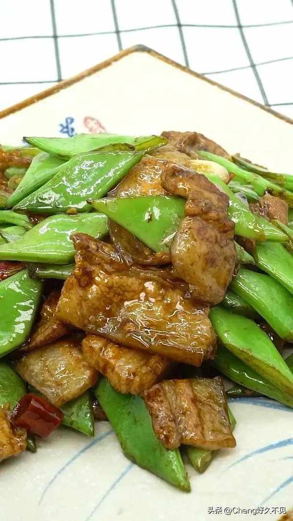 1. 四季豆去兩頭,切成小段;豬肉切成小塊備用。
