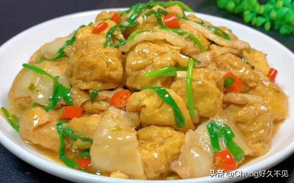 1. 將油豆腐切成小塊,豬肉切成薄片,蔥薑蒜切成末備用。