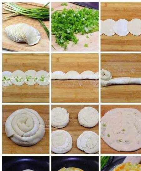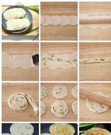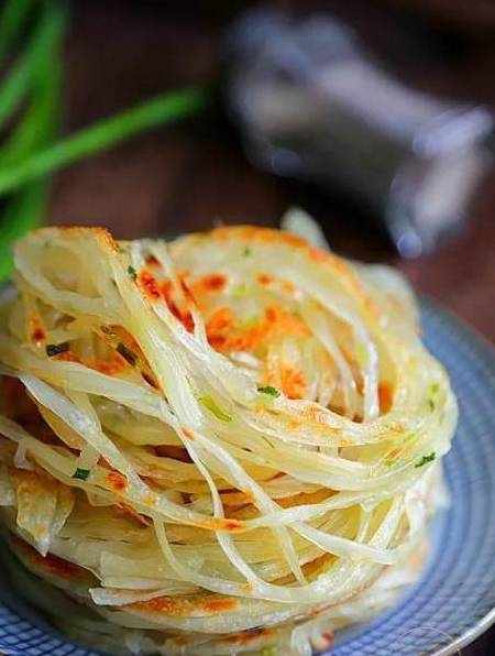 這樣烙好的餅,金黃酥脆,蔥香濃鬱,用筷子輕輕一挑,絲絲分明,與外面餐廳賣的一樣好吃。做法很簡單,隻需要將剩餃子皮疊在一起搟開,然後切成細絲,抹上油,撒上蔥花和鹽,再卷在一起搟成餅狀就可以上鍋烙瞭~