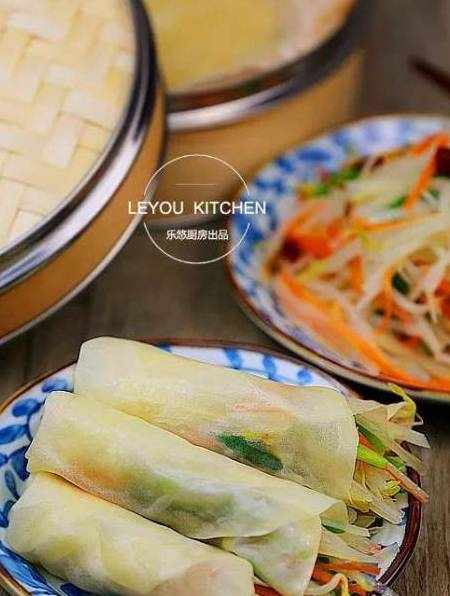 用剩餃子皮做好的春餅,薄如紙,口感筋道,包上各式蔬菜,非常開胃可口。