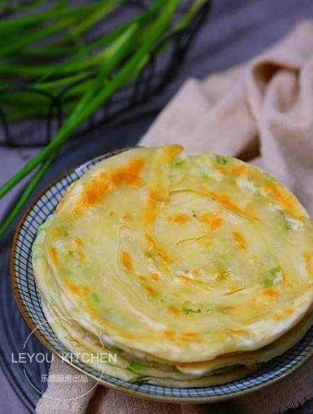 傳統的蔥花餅,用餃子皮也可以做哦。做好的蔥花餅表面金黃,油香酥脆,非常好吃。