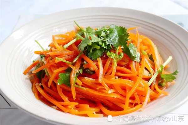 做法:1.將胡蘿卜洗凈,刮去表皮,切成細絲,放入盆內,撒少許鹽抓拌均勻,醃漬半小時後用涼開水沖洗一下,擠去水分,放入盤中。
