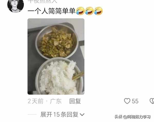 一位作者分享瞭自己簡簡單單的一頓午飯,引起瞭無數網友的回復,看到大傢的回復認識到自己其實都一樣,都是粗茶淡飯,沒有多麼奢華……現在看一下大傢的評論吧!