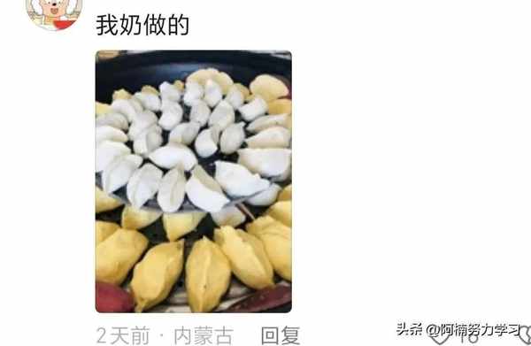 最後這一位是大傢都吃過的餃子啦,不過這位網友奶奶的餃子還有兩種顏色的,捏的也非常大!這樣的餃子蘸醋吃真的超級香!