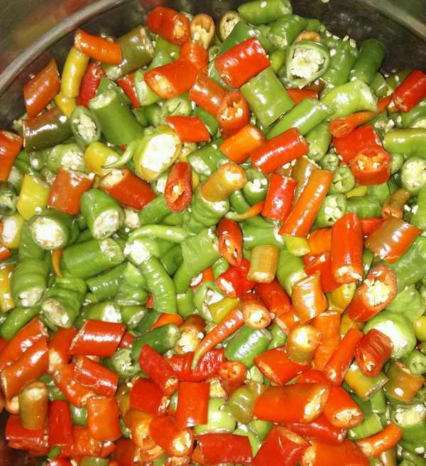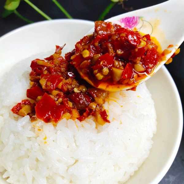可五元份量的餃子哪裡夠一個做力氣活的成年男子吃飽,於是,他把目光投向瞭店裡每個桌子上擺放的辣椒罐。