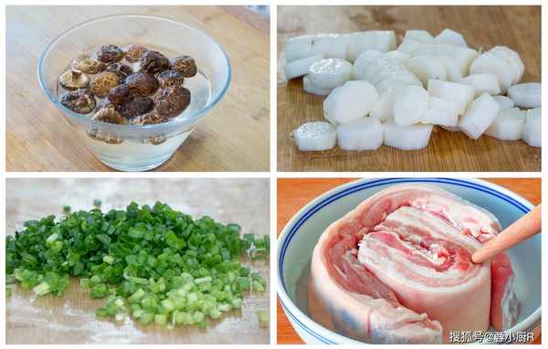 主料:五花肉2斤、幹香菇1把、山藥1根、小蔥1把、醬油2勺、生粉1勺、紅薯粉1勺