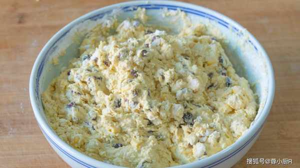 3、然後把剩餘的三分之一玉米粒也倒進來,再加100克蔓越莓幹、100克蜜紅豆、200克糯米粉、50克黃米面,攪拌均勻,用手能揉成團就行。