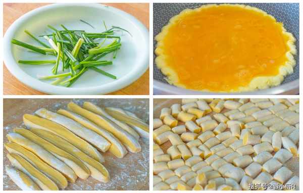 食材:南瓜200克、西紅柿2個、面粉250克、雞蛋3個、香菇4個、 蔥花、洋蔥