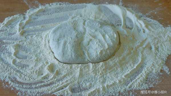 4、面團兒醒好後取出來放砧板上,撒點幹面粉後先用手掌壓扁,再切成2厘米左右的長條全部切好後取出一個小長條繼續搓長搓細,接著搓下一根,全部搓完後挨著擺放到一起。然後再切成小面劑子,撒點幹面粉後抖散防粘。