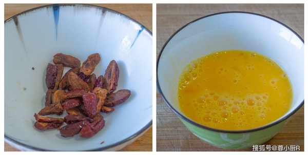 食材:紅薯400克、白糖30克、糯米粉300克、雞蛋2個、紅糖4顆、紅棗1把、枸杞適量