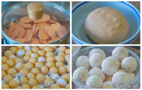 1、紅薯400克,先清洗幹凈,然後去皮切片,切好後直接上鍋蒸,大火15分鐘就熟透瞭,用筷子插一下能插透就可以出鍋瞭,倒出來趁熱加30克白糖,搗成細膩的紅薯泥。
