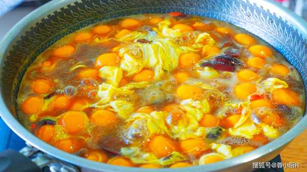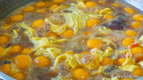 6、起鍋燒水,加4塊紅糖、1把紅棗、少許枸杞。大火煮開後倒入紅薯丸子,繼續煮5分鐘,煮到全部飄起來就熟瞭。接著倒入一大勺淀粉水,攪拌幾下,鍋裡湯汁變濃稠就可以瞭。然後把雞蛋液也倒進來,大火煮15秒,然後關火後翻拌幾下就可以出鍋瞭。
