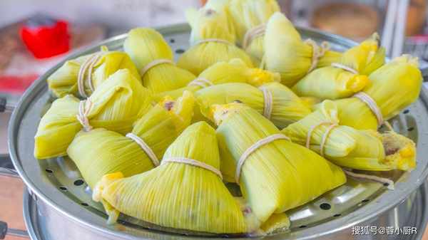 6、半個小時後鍋裡的玉米小粽子也蒸好瞭,取出來後稍微放涼就可以吃瞭,