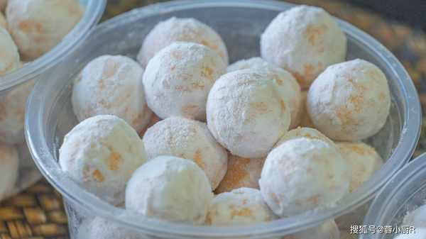 3、揉好的面團兒取出來分成三份,再分別搓長條,切成大小均勻的小面劑子,分好先搓圓。然後全部放入剛剛準備好的盤子裡,搖晃均勻,讓小丸子上都能裹上一層糯米粉,這樣就不會粘連到一起瞭。