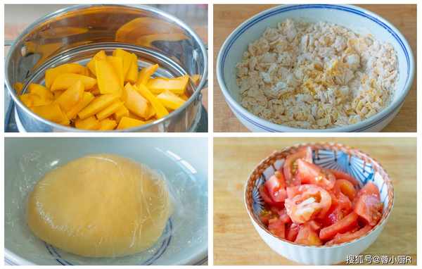 1、南瓜200克,去籽去皮,然後切成薄一點的片,更方便熟透。裝入鍋中,大火蒸10分鐘左右就熟透瞭,取出來倒入大碗裡,趁熱搗成細膩的南瓜泥。放涼後再少量多次的加250克面粉,沒有幹面粉後再下手揉面。