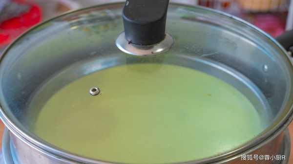 1、毛豆200克加水清洗幹凈,洗好後瀝幹水分倒入破壁機中,接著加300毫升清水打成細膩的漿,倒出來的時候記得過濾一下,口感會更細膩一些。過濾的時候可以用勺子刮一刮,過濾的時候更快速。
