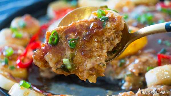 7、關火後直接把醬汁淋到肉餅和山藥上,再撒上小蔥花增香提色,喜歡吃辣的還可以放點辣椒,好吃的山藥蒸肉餅就做好瞭;