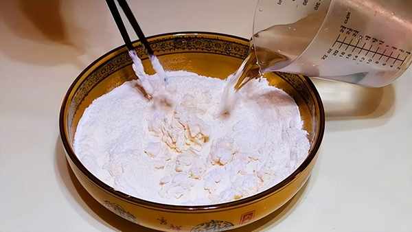 調面時面和水的比例大約為2:1,具體根據自己用的面的幹濕度適當調整;調面的時候加入少許鹽和食用油,可以增強面的延展性,包的時候不易破皮。