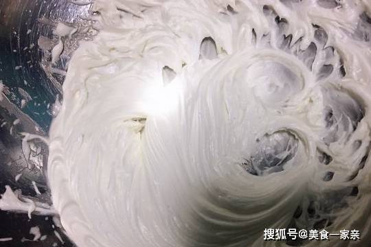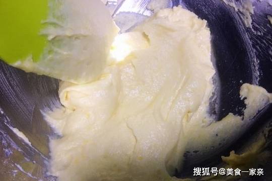 1.稱好120克常溫狀態下凝固的豬油,用打蛋器打發至細膩順滑狀態。