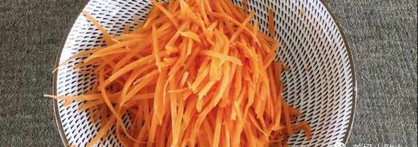 2.胡蘿卜削皮,擦成細絲備用。胡蘿卜裡面含有豐富的維生素a ,不僅對皮膚好,也對視力好,而且多吃可以排毒。