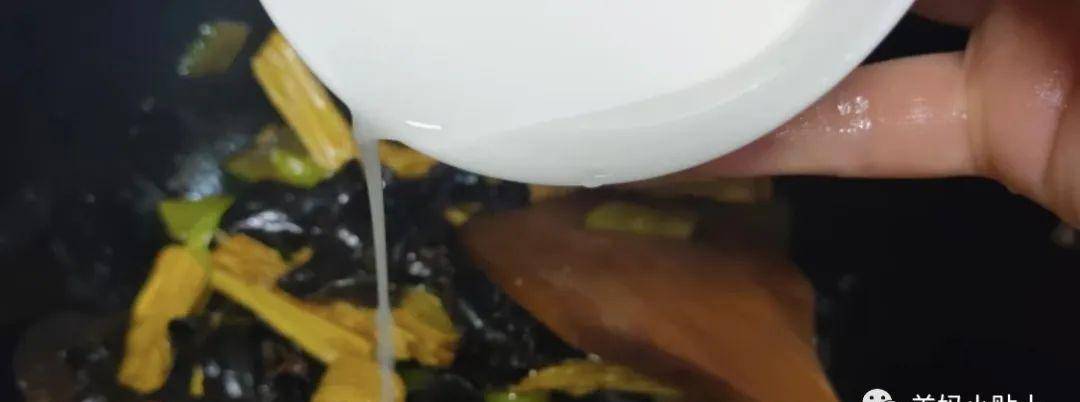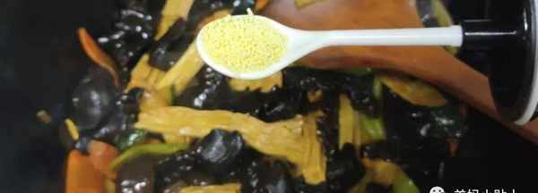 6.然後再把木耳,腐竹放進去一起翻炒。