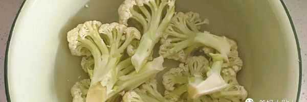 1.花菜準備小半顆,底部切點,留上半部分,然後切成小朵一點,或者用手撕也行,要洗用流動的水清洗幹凈。