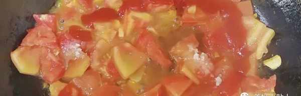 4.鍋裡放油,切一點蒜片進去爆香,再把番茄放進去,趁熱翻炒出汁水,全程大火。