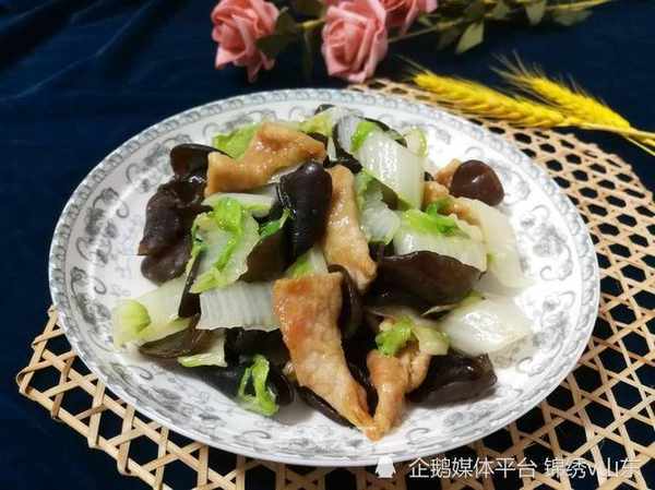 食材:圓白菜,肥瘦豬肉,黑木耳,蔥薑蒜,醬油,料酒,鹽,植物油