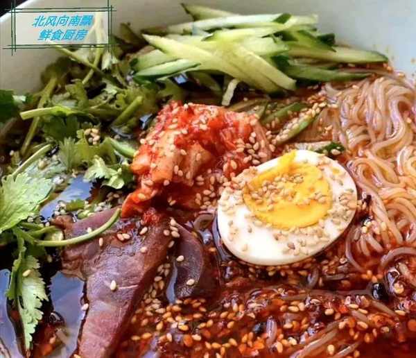 所需食材:冷面,黃瓜,西紅柿,牛肉,雞蛋,辣白菜,辣椒油,香菜,芝麻