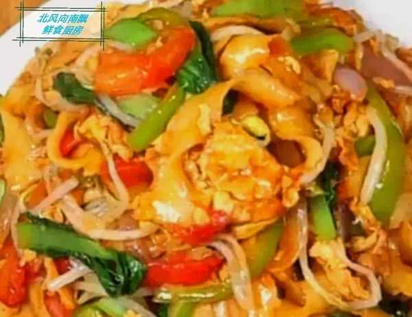 2 另起鍋燒油,雞蛋打散下鍋煸炒,炒熟,放入面條,豆芽,小青菜,洋蔥,胡蘿卜,青椒,西紅柿。