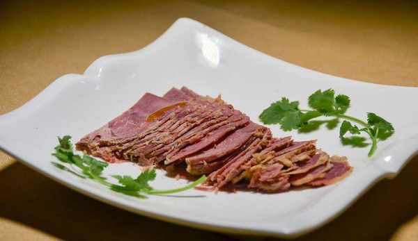 吃膩涼拌驢肉,香噴噴的驢肉火燒也很不錯。驢肉經過高湯鹵制,咸香入味,口感依舊細嫩。將驢肉用刀剁成碎末,可與青椒一起搭配,隨後夾在新鮮出爐的火燒裡,再澆上些許湯汁,外酥內軟,味道真是一絕。